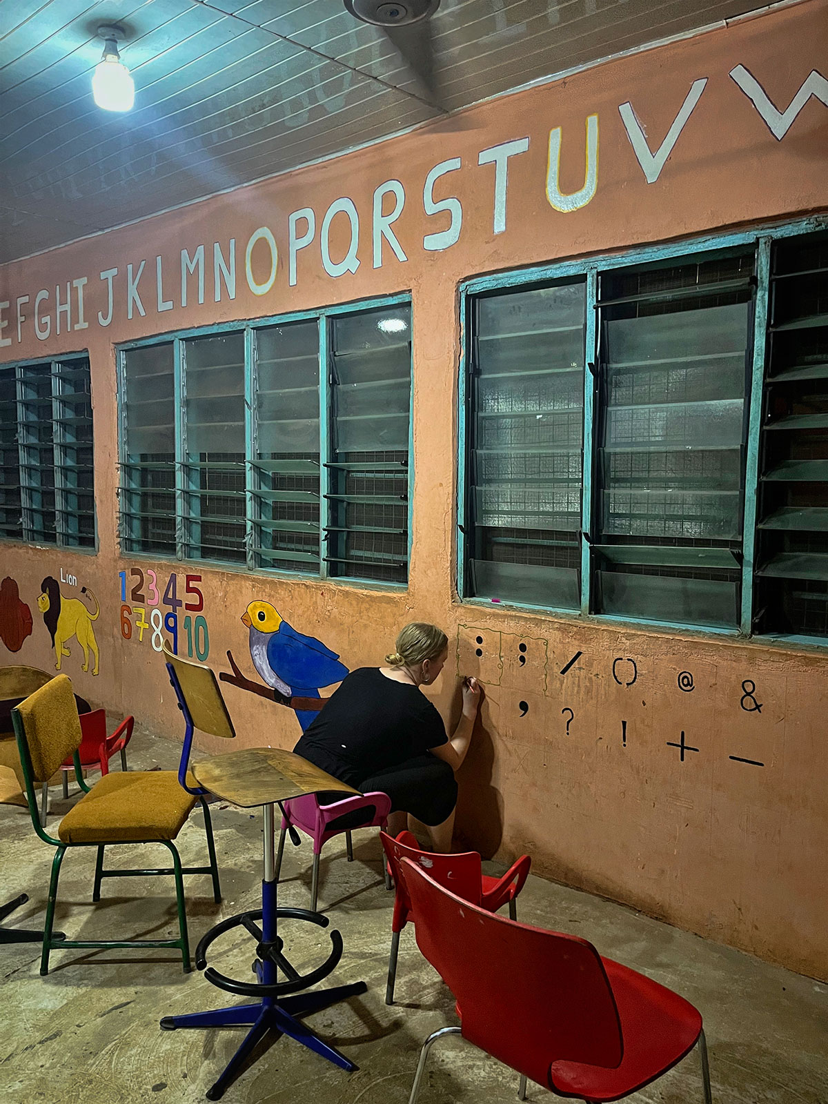 En uge i april gik vi i gang med at optimere biblioteket. Mange fra landsbyen kom og hjalp til, og i løbet af en uge forandrede biblioteket sig til et forbedret læringsrum, fyldt med farver og indirekte læring, skabt i samarbejde med børn og unge, ansatte og frivillige. På væggene blev blandt andet malet et alfabetet, menneskets skelet, dyr, tal, computer tegn og frugter. Pynt af papir, et ur, en opslagstavle og landkort kom også op på lokalets vægge. Måtten til gulvet sørger for at flere børn kan være på biblioteket, mens den nye vandtank giver mulighed for vand til de mange børn der kommer i løbet af dagen. Derudover kom gardinerne op for at skærme for solen og den gamle trædør var ved at gå i stykker, og måtte skiftes ud med én i metal. Den fik vi smedet, og sat op af en mand i landsbyen.