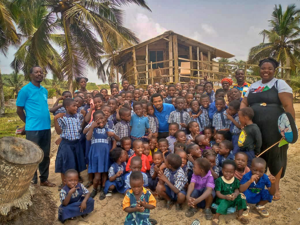 Der blæser altid en frisk brise på ’lærerværelset’ ved landsbyskolen i Pebi. Et langt stenkast fra stranden og rejst på stolper helt op blandt kokospalmernes skygge er der opført en lille hytte, på stranden i Ghana. Det var et dansk påfund at have en hytte oppe i træerne og først var ghaneserne noget skeptiske. Men da det viste sig, at der var både skygge og en let brise, har hytten udviklet sig til at udgøre et vigtigt samlingspunkt. Men desværre faldt et palmetræ under en storm ned over hytten. Desuden var elinstallationerne meget ringe, ligefrem farlige. Derfor søgte vi U-kassen om hjælp til at få hytten ordentligt på fode igen.
