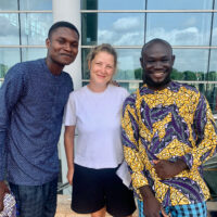 Vores første rejse til Togo fandt sted i efteråret 2021. Trine kendte en lokal væver fra et tidligere samarbejde, og vi skulle besøge ham og se, hvad de lavede i hans workshop, som nu hedder Inana Textile. Desuden havde den tekniske skole i byen bedt om vores hjælp til at designe nye skoleuniformer… men det er en helt anden historie.