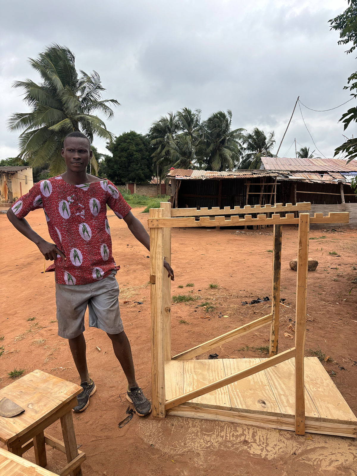 I TOGO ESOME har vi i de seneste tre år søgt diverse fonde, solgt produkter og selvfinansieret opbygningen af en 350 m² stor workshop, hvor de indsatte efter “mesterlære-princippet” kan lære af hinanden i det 3-årige projekt. I august 2024 står byggeriet færdigt. Med denne udvidelse kan vi rumme flere indsatte i programmet og give dem et sikkert, dedikeret miljø til at lære og praktisere deres nye håndværk. To tidligere indsatte, JayJay og Amen, har påtaget sig opgaven med at undervise de indsatte, der ønsker at deltage i programmet. Deres erfaring og dedikation gør dem til ideelle mentorer, da de ikke kun er dygtige vævere, men også forstår vigtigheden af resocialisering og muligheden for en ny begyndelse.